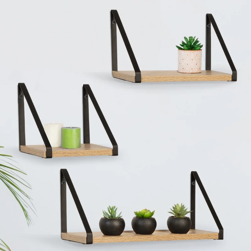 Choisissez le lot de 3 étagères murales design industriel bois/métal pour personnaliser votre mur !