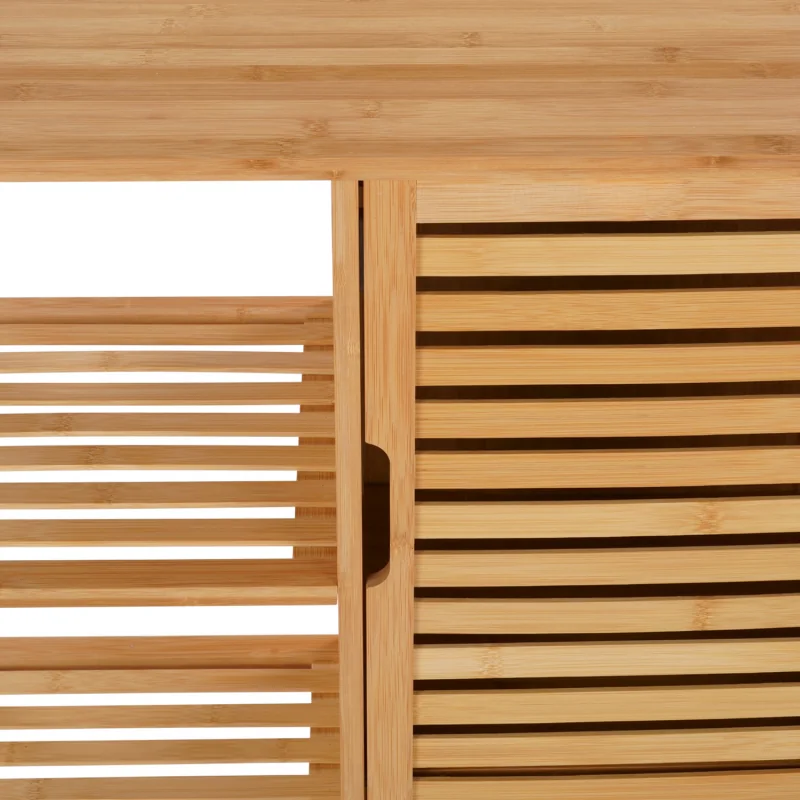 Ce meuble est composé d'une étagère à troisniveaux et d'un grand placard avec une étagèrepouvant accueillir de divers articles de toilette, desserviettes, des objets décoratifs, etc.