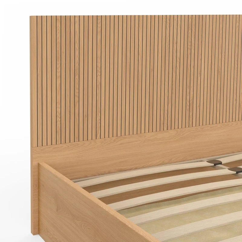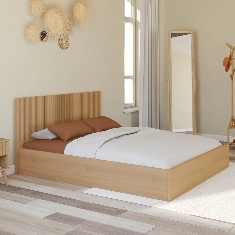 En bonus, la tête de lit avec son effet lattes donnera du cachet à votre chambre.Dimensions globales : 206 (L) x 168 (l) x 90 (H) cm