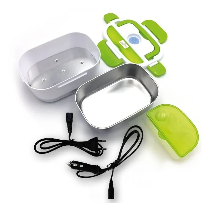Fonctionnement sur deux types d'alimentation différents : branchement sur secteur ou sur prise allume-cigare. Ainsi, réchauffez vos plats au travail ou en voiture afin de manger toujours équilibré ! Non odorante et hermétique, la lunch box est équipée d'un joint en silicone qui évitera toute coulure ou toute émanation d'odeurs alimentaires. Accessoires inclus : 1 cuve en acier inoxydable de 1.5 litres de contenance, 1 récipient en plastique de 500 millilitres de contenance, 1 cuillère en plastique rangée dans son compartiment. Les deux récipients et la cuillère sont amovibles pour un lavage au lave-vaisselle : nettoyage facile et rapide pour une nouvelle utilisation dès le lendemain !